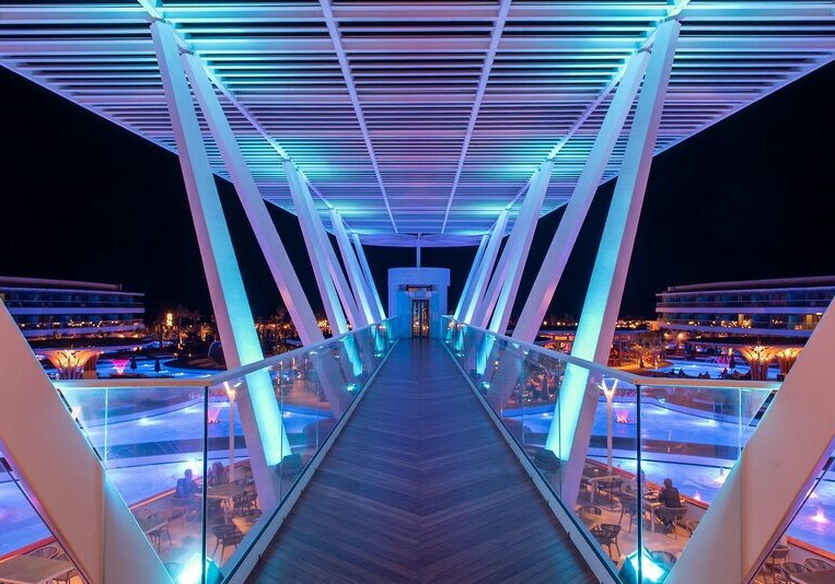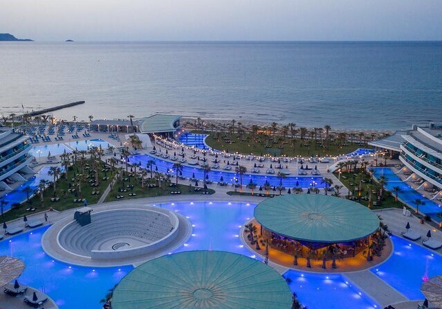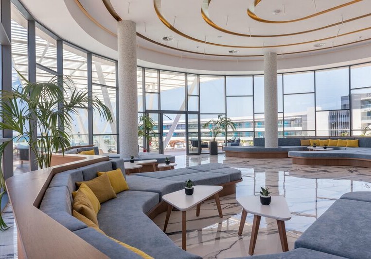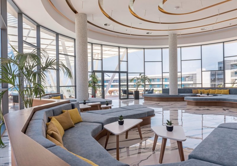 Die öffentlichen Bereiche sind klar gegliedert: Lobby mit 24-Stunden-Rezeption, Theatersaal, Shops bis hin zum Supermarkt. Sonnenbereiche mit Liegen, Sonnenschirmen und Badetüchern schaffen Struktur am Wasser. WLAN ist im gesamten Resort verfügbar. Highlight: Durchdachte Infrastruktur mit kurzen Wegen und verlässlichem WLAN.