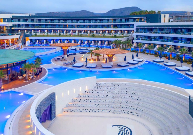 Ihr bewegt Euch zwischen Lobbybar, Sonnenterrassen und dem Theatersaal, während WLAN im gesamten Hotel verlässlich begleitet. Vier Meerwasser-Swimmingpools setzen maritime Akzente, der Zugang zum Wasserpark im Schwesterhotel Lyttos Beach erweitert das Erlebnis. Highlight: Zugang zum Wasserpark des Schwesterhotels für zusätzlichen Wasserspass.