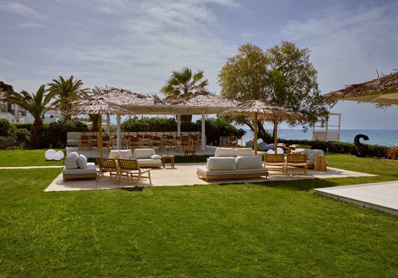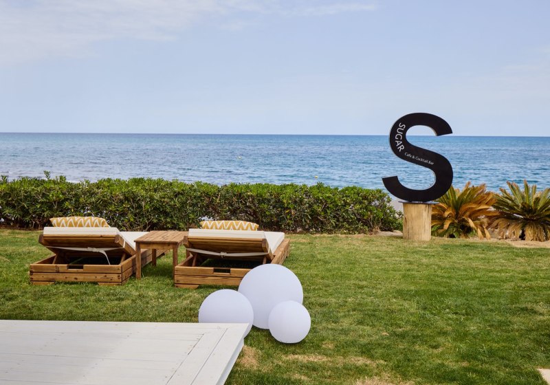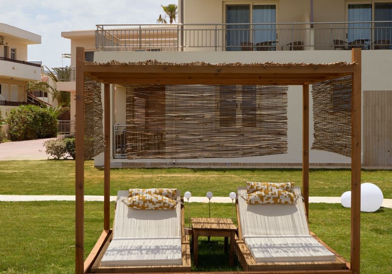 Die Infrastruktur ist kompakt und durchdacht: 24-Stunden-Rezeption, Aufzug und kostenloses WLAN sorgen für Orientierung und Komfort. Im Garten verteilen sich Gazebos, Hängematten, Sonnenliegen und Loungemöbel. Am Pool erwartet Euch eine Terrasse mit Schirmen, am Strand sind Liegen und Schirme bereits inkludiert.