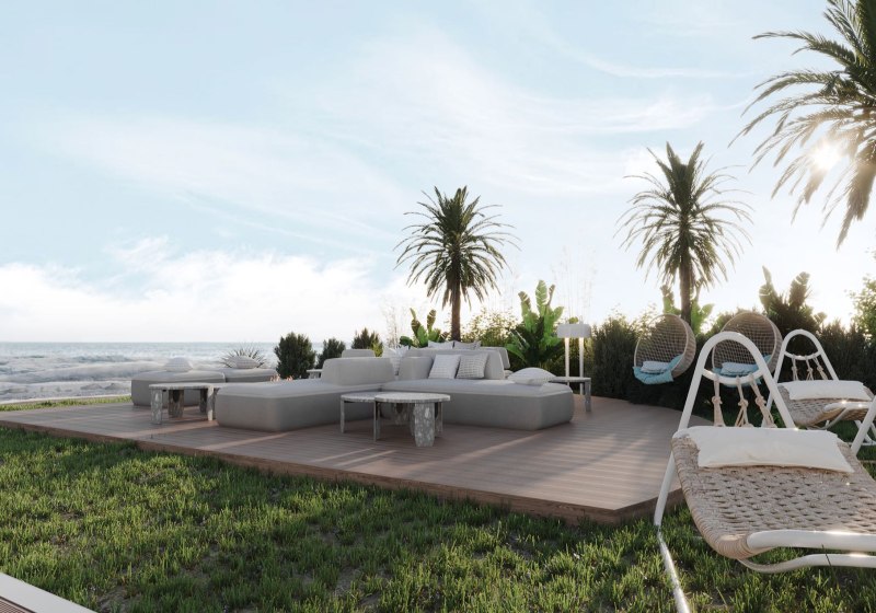 • Direktlage Strand: Unmittelbare Strandlage mit Liegen und Schirmen inklusive am Wasser.