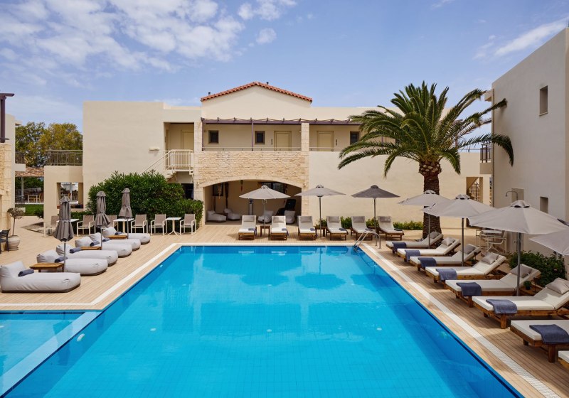 Wer Adults-only-Atmosphäre, kurze Wege und inklusive Strandleistungen schätzt, findet hier eine solide Basis für entspannte Stunden zwischen Pool, Strandbar und abendlichen Streifzügen nach Rethymnon. Einfach, gut organisiert und nah am Wasser.