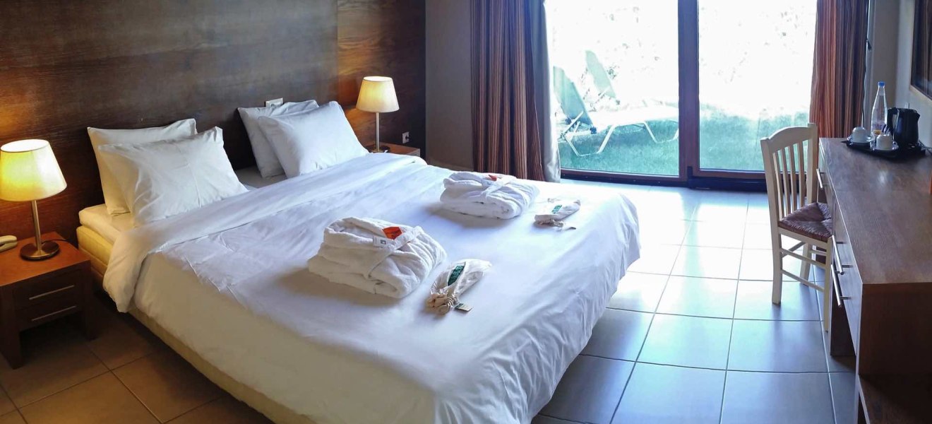 Komfortzimmer mit feinen Details und ein fokussiertes Freizeitangebot stützen ruhige Tage am Wasser, ergänzt durch dezente Abendunterhaltung. Der ausgezeichnete Strand von Matala liegt in Reichweite, der Flughafen Heraklion gut planbar entfernt. Ein Ort für eure perfekten Ferien zwischen Meer, Pool und unkomplizierter Gastlichkeit.