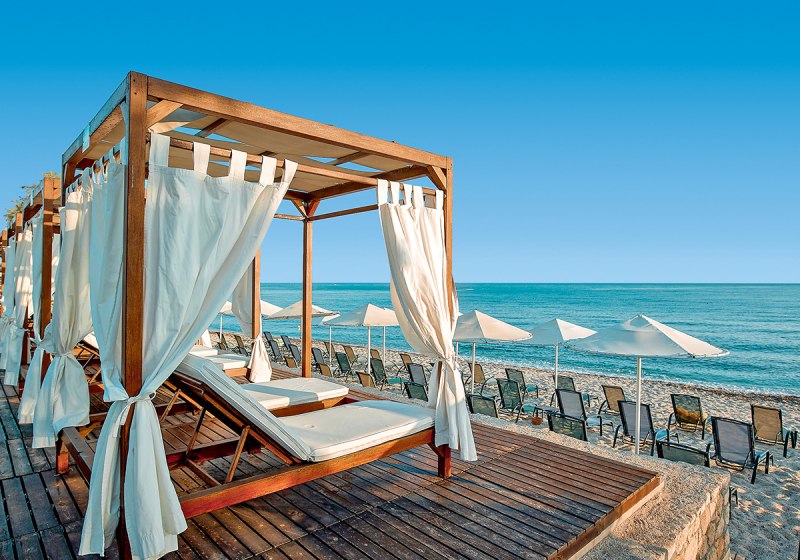 - Strandkomfort: Liegen, Schirme und Badetücher direkt am Strand bereitgestellt.
