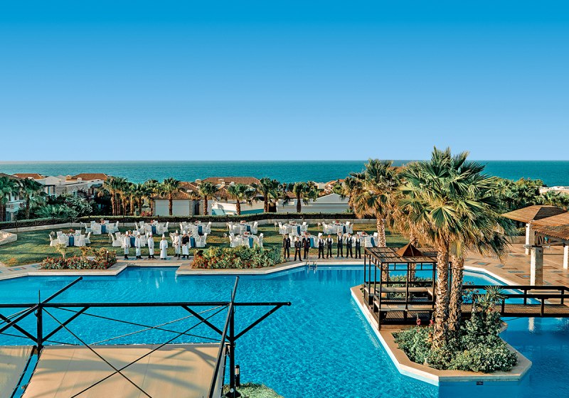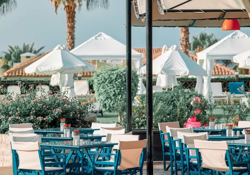 Kulinarisch wählt Ihr zwischen Vielfalt und Spezialisierung: Hauptrestaurant mit Außenbereich, À‑la‑carte‑Gourmetadresse, das italienische La Pergola sowie eine asiatische Variante mit Sushi‑Bar. Dazu ergänzen Cafeteria, Snackbar, Beach Bar Restaurant, zwei Poolbars und eine Bar mit Panoramaterrasse.