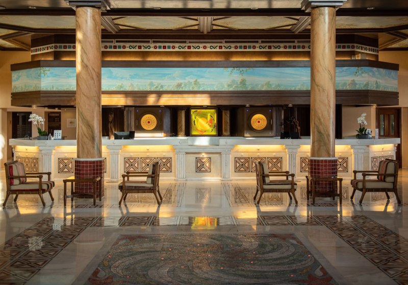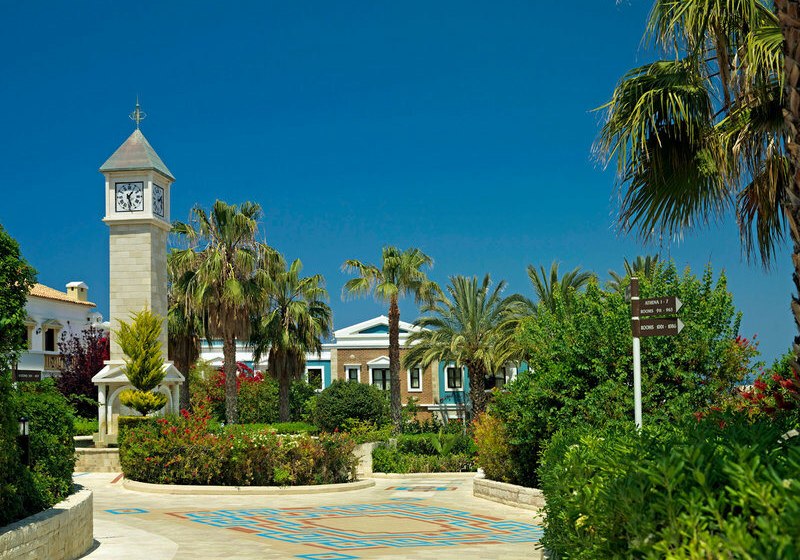 Die Anlage führt Euch von der Empfangshalle mit Rezeption durch Gärten zu zwei Außenpools mit Meerwasser, separatem Kinderpool und Strandzone. Liegen, Schirme und Badetücher stehen an Pool und Strand bereit. Shops wie Souvenir, Boutique, Juwelier und Kiosk rahmen die Wege, WLAN ist in den Zimmern verfügbar.