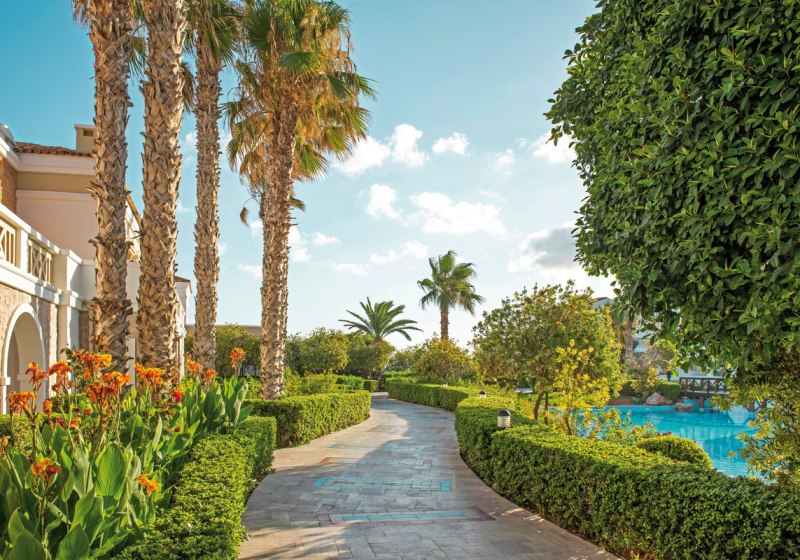 - Weitläufige Bereiche: Gartenwege verbinden Lobby, Pools, Shops und Panoramaterrasse harmonisch.