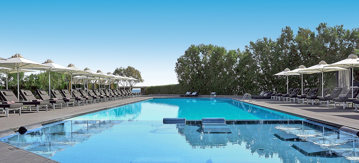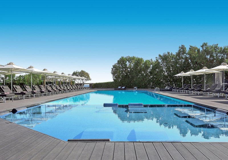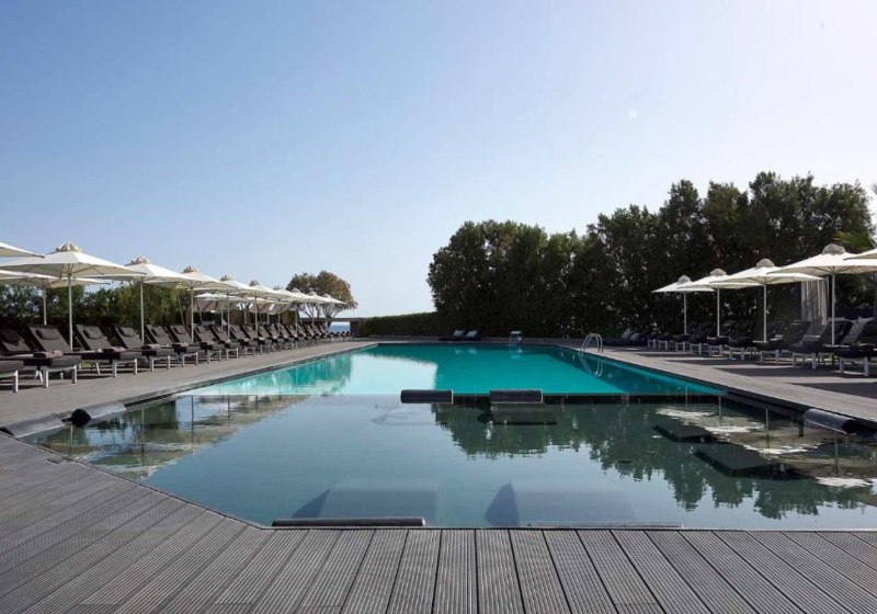 Mit 83 Zimmern bleibt der Rahmen persönlich, ohne auf Komfort zu verzichten. 2019 renoviert, präsentiert sich das Haus modern, mit Lobby, Bar- und Terrassenbereichen für unaufgeregte Stunden am Meer. Ihr wählt zwischen sportlichen Momenten wie Yoga, Pilates oder dem Fitnessbereich und gepflegter Entspannung im Spa mit Sauna, Dampfbad und Hamam. Abends begleitet Live-Musik die Strandkulisse, während zwei Restaurants, eine Snackbar und zwei Bars Euch kulinarisch versorgen.