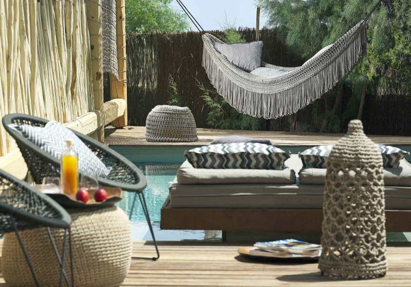 - Aussenpool: Sonnenterrasse mit Pool, Badetüchern und Poolbar für Pausen.