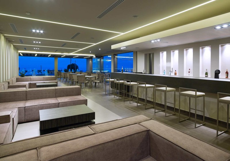 - Lounge-Atmosphäre: Bars und Terrasse verbinden Musik, Meerblick und gelassenes Tempo.