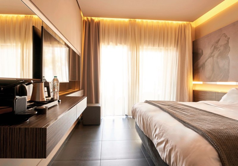 Im NEMA Design Hotel & Spa trefft Ihr auf ein erwachsenes Hideaway, das Ruhe und Design mit Strandnähe verbindet. Das Boutique-Ambiente wirkt aufgeräumt und klar, die Wege sind kurz, die Gemeinschaftsbereiche bewusst reduziert gehalten. Adults only ab 16 Jahren sorgt für eine entspannte Grundstimmung. Direkt vor Euch liegt der Sandstrand von Analipsi, mit bereitstehenden Liegen und Schirmen inklusive.