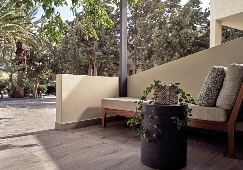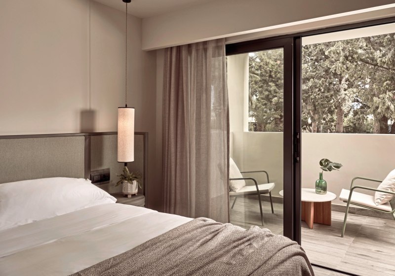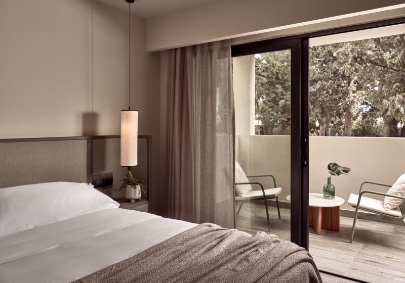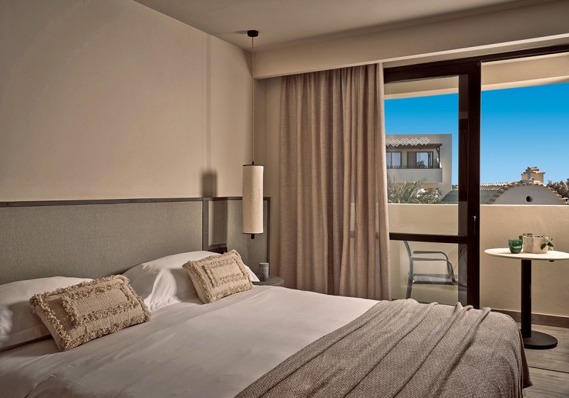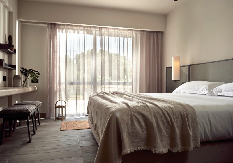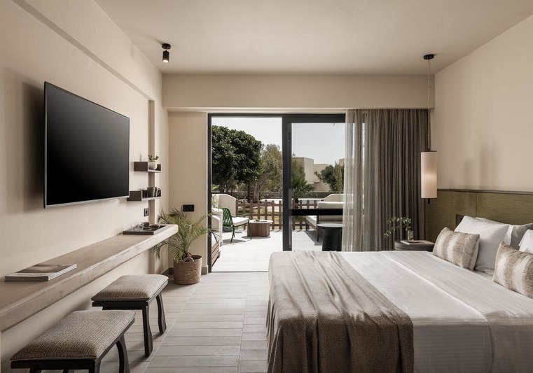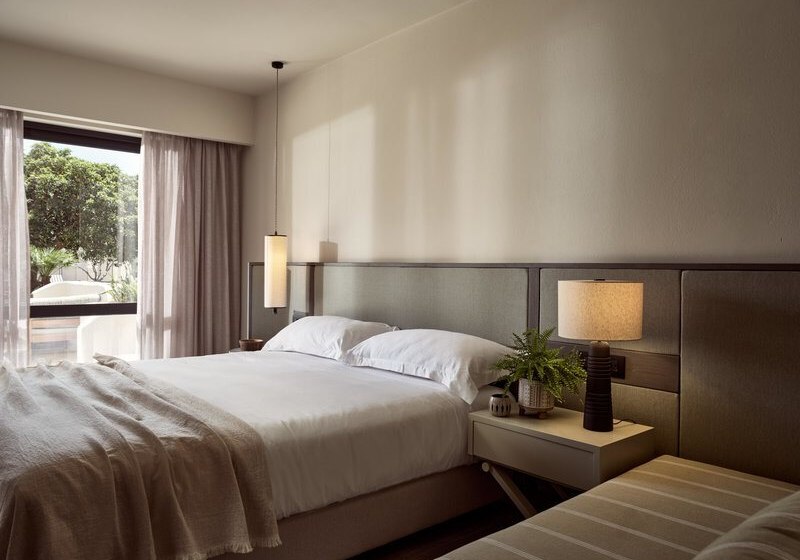 Die 132 Zimmer wurden modernisiert und verbinden klare Formen mit praktischen Details. Walk-in-Dusche, Bademantel, Slipper und Föhn sorgen für Komfort. Klimaanlage, WLAN, Sat-TV, Safe sowie Kaffee-/Teezubereiter gehören zur Ausstattung; die Minibar steht gegen Gebühr bereit. Balkon oder Terrasse öffnen den Blick wahlweise in Gartenbereiche oder Richtung Strand.