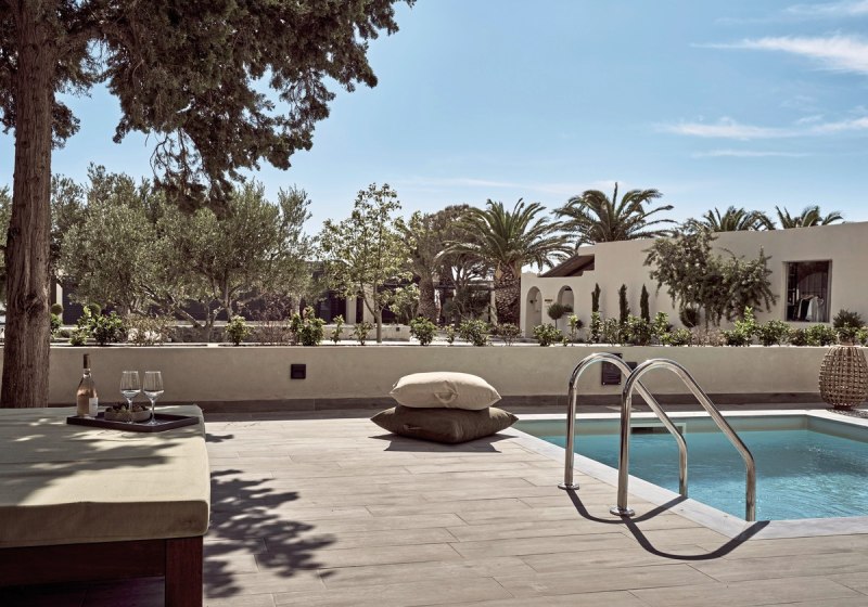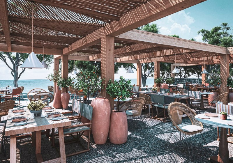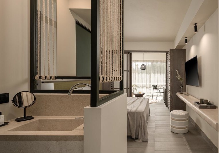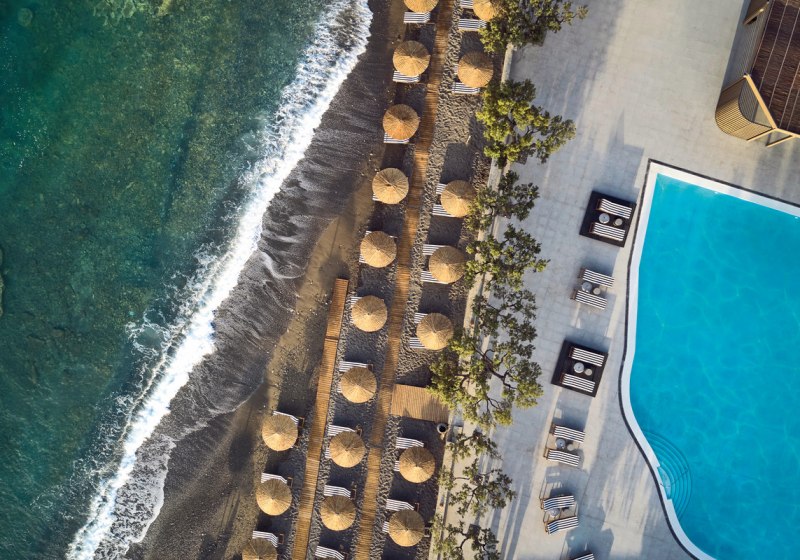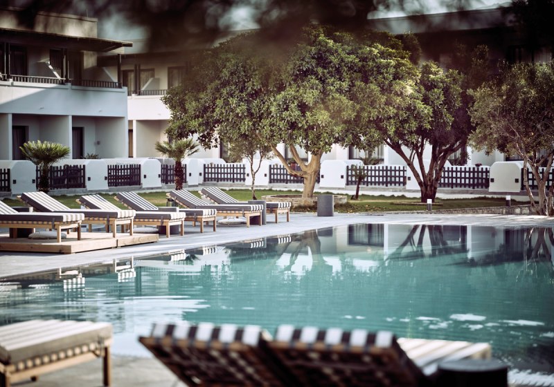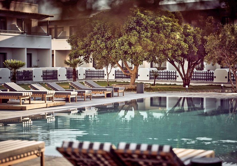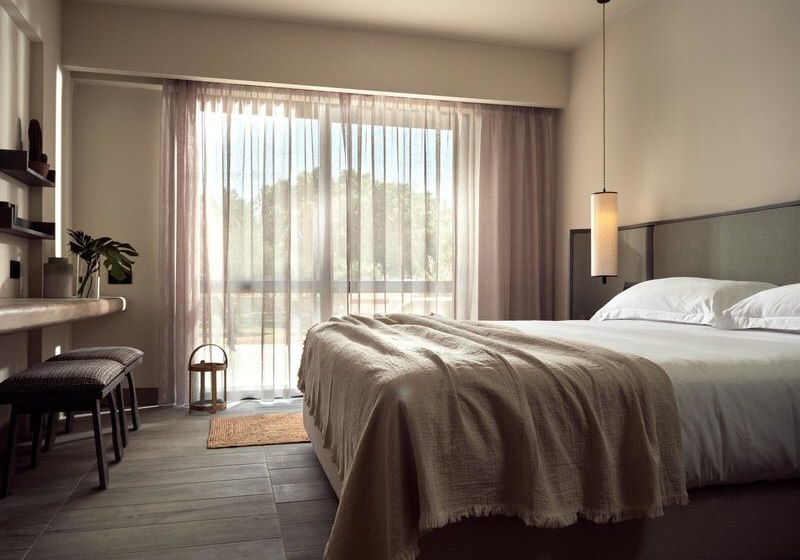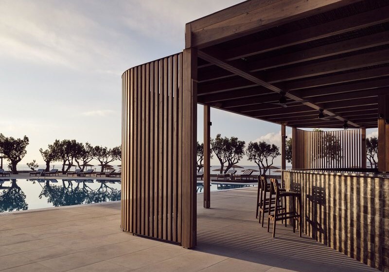 Ihr entscheidet zwischen entspanntem Tagen am Meer oder aktiveren Stunden: Yoga und Pilates gehören ebenso dazu wie ein Tennisplatz und ein Outdoor-Fitnessbereich. Abends verlagert sich das Geschehen an Poolbar und Strand, wo DJ-Sets und ein Freiluftkino Atmosphäre schaffen. Kulinarisch führen Euch das Hauptrestaurant und ein À-la-carte-Restaurant durch regionale und internationale Küche; Lobbybar, Poolbar, Strandbar und ein Kafenion runden das Bild ab.