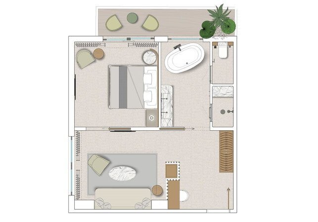 Ein Teil der Einheiten bietet ein separates Wohnzimmer mit Schlafcouch, einige verfügen über einen privaten Pool für ungestörte Stunden. Ein Gute-Nacht-Service ist vorgesehen, sodass Ihr abends strukturiert zur Ruhe kommt. Wer Platz bevorzugt, wählt großzügigere Kategorien mit Wohnbereich, wer Nähe zum Wasser sucht, orientiert sich an Zimmern mit Strandblick oder Privatpool. Highlight: Auswahl von Zimmern mit separatem Wohnbereich oder privatem Pool.