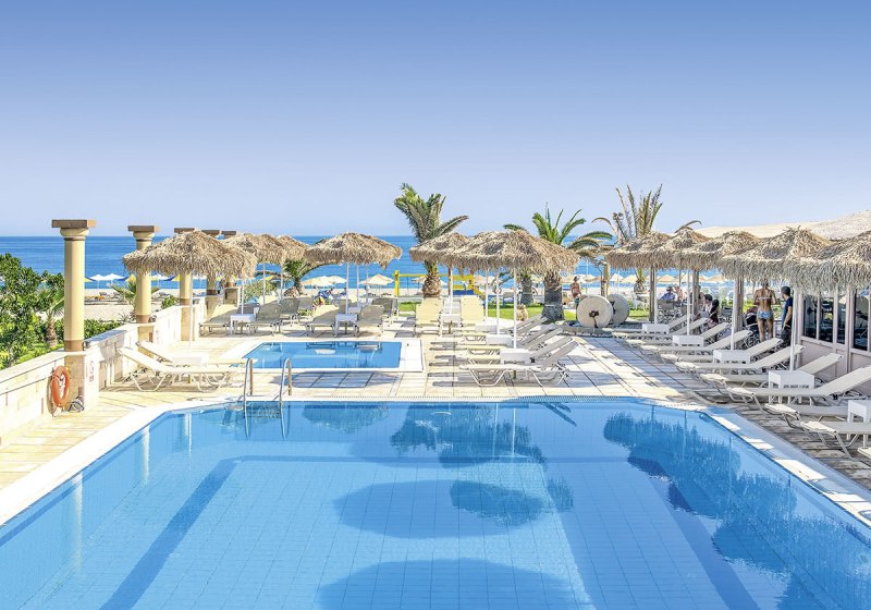 Die öffentliche Bereiche wirken übersichtlich und funktional: 24-Stunden-Rezeption, Lobby mit Sat-TV-Ecke, Internetecke und verlässliches WLAN – sogar am Strand. Wer mit Kindern reist, findet praktische Infrastruktur wie Minimarkt, Spielmöglichkeiten und bequeme Liegen mit Schirmen am Pool und am Strand. Highlight: Direkte Strandlage mit kurzer Distanz nach Rethymnon, ideal fürs entspannte Baden und kleine Ausflüge.