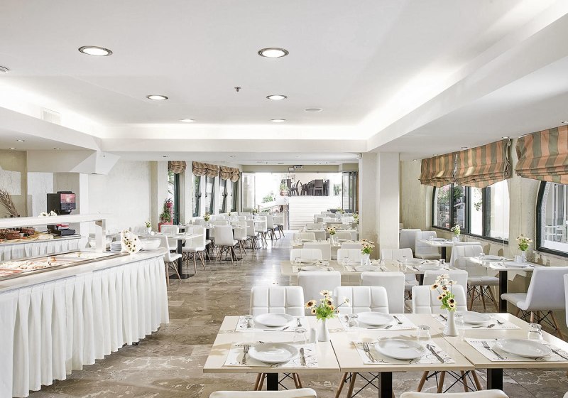 Im Kirki Seaside Lounge-Bar/Restaurant esst und trinkt Ihr nah am Wasser – perfekt vom ersten Kaffee bis zum letzten Drink. Die Verpflegungsmodelle sind flexibel: von Übernachtung mit Frühstück bis Halbpension, Mittag- und Abendessen, auf Wunsch auch All-Inclusive. Vegetarische Optionen und Diätgerichte runden die Auswahl ab.