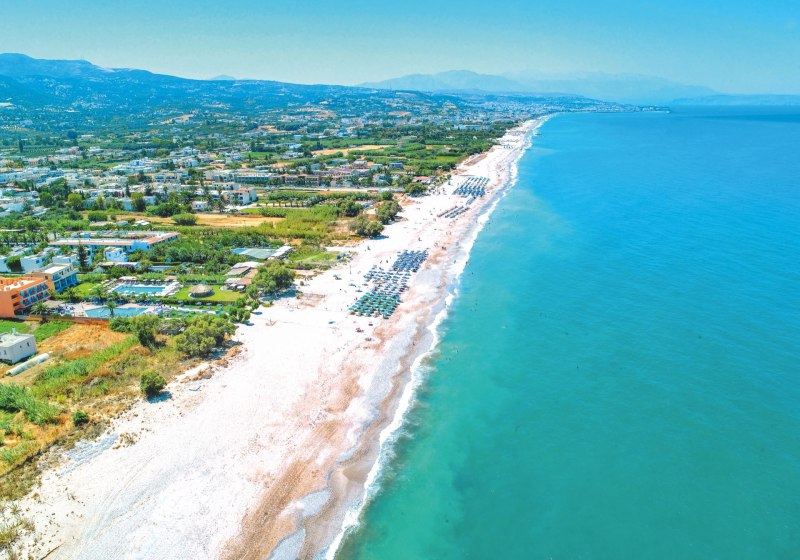 Ihr wohnt in Missiria bei Rethymno auf Kreta, direkt am Kies- und Sandstrand. Das Zentrum von Rethymnon liegt rund drei Kilometer entfernt; eine Bushaltestelle befindet sich in der Nähe, ebenso Geschäfte, Tavernen und Bars. So verbindet Ihr Badezeit mit kurzen Wegen für Erkundungen, kleine Einkäufe oder einen abendlichen Abstecher an die Altstadt und den Hafen.