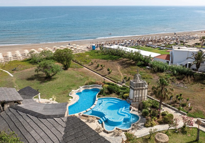 Orpheas Resort steht für ruhige Strandtage, klare Strukturen und einen erwachsenen Rahmen. Ihr wohnt direkt am langen Sand, es gibt zwei Pools, einen Außen-Whirlpool und eine Beachbar. Küche und Service sind hervorragend bewertet; die Abendunterhaltung bleibt dezent mit Live-Musik. Highlight: Adults-only an erster Strandlinie.