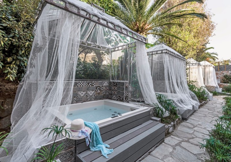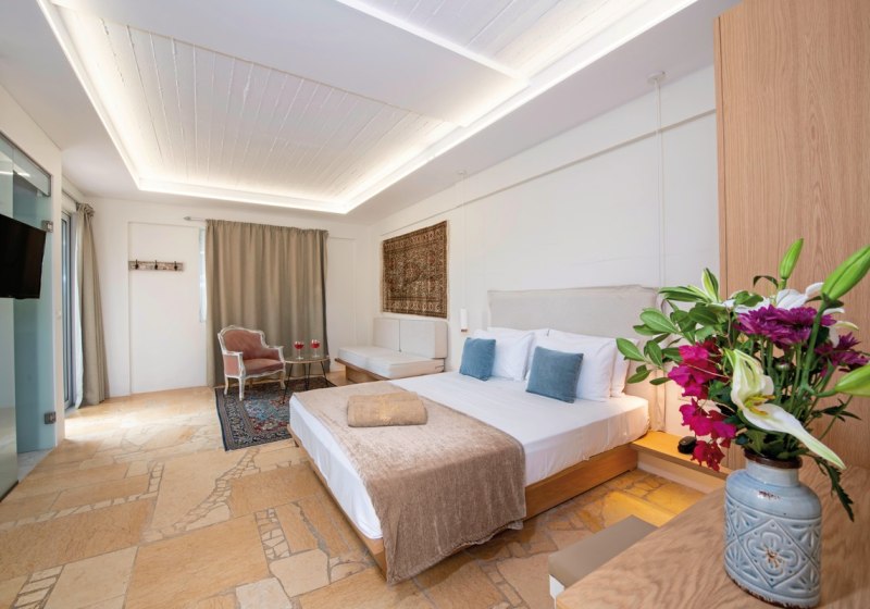 Zur Wahl stehen Doppelzimmer, Doppelzimmer mit Außenwhirlpool, Juniorsuiten Meerseite, Suiten Meerseite und Suiten Meerseite mit privatem Pool. Je nach Kategorie genießt Ihr Meer-, Garten- oder Bergblicke. Die Kombination aus Lage, Außensitzplatz und Extras wie Privatpool setzt akzentuierte Schwerpunkte. Highlight: Suiten zur Meerseite, teils mit privatem Pool für maximale Privatsphäre.