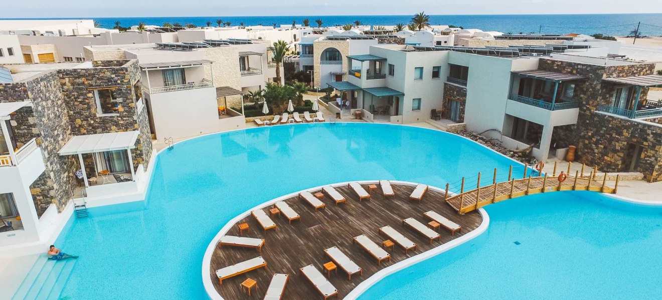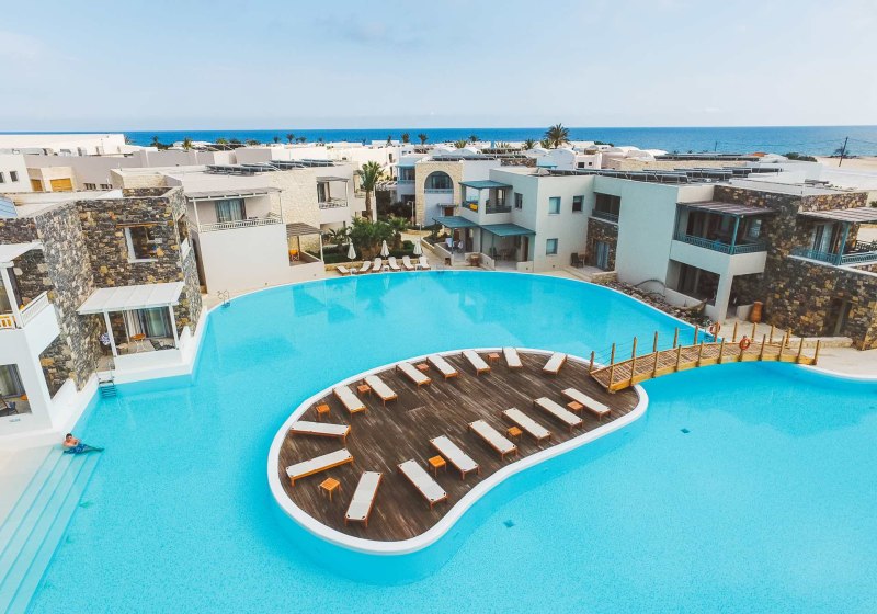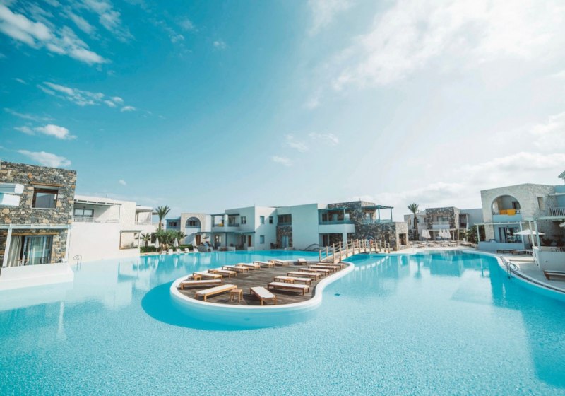 Im Ostria Resort & Spa wohnt Ihr direkt am Strand von Katharades bei Ierapetra – mit kurzen Wegen vom Zimmer zum Wasser und viel Raum für entspannte Tage. Sechs Außenpools, darunter zwei beheizte und ein Adults-Only-Bereich, schaffen Abwechslung zwischen Meer und Pool. Familien profitieren von Kinderbecken mit Wasserspielen, Spielplatz und Kindermenü, während Ruhesuchende am separaten Erwachsenenpool ungestört Bahnen ziehen. Die Anlage wirkt weitläufig, mit Sonnenterrassen, Liegen und Schirmen am Pool sowie WLAN in der gesamten Anlage.