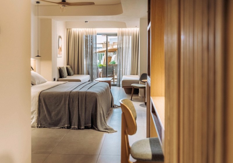 Superior-Zimmer bieten eine ebenerdige Dusche. Swim-up-Optionen ergänzen Terrasse, Sonnenschirme und Liegen um den direkten Zugang zum Gemeinschaftspool – ideal, wenn Ihr morgens sofort ins Wasser möchtet. Familienzimmer setzen auf ein separates Schlafzimmer mit Verbindungstür und einen Wohn-/Schlafraum mit zwei Schlafsofas. Highlight: Swim-up-Zimmer mit direktem Einstieg in den Gemeinschaftspool.