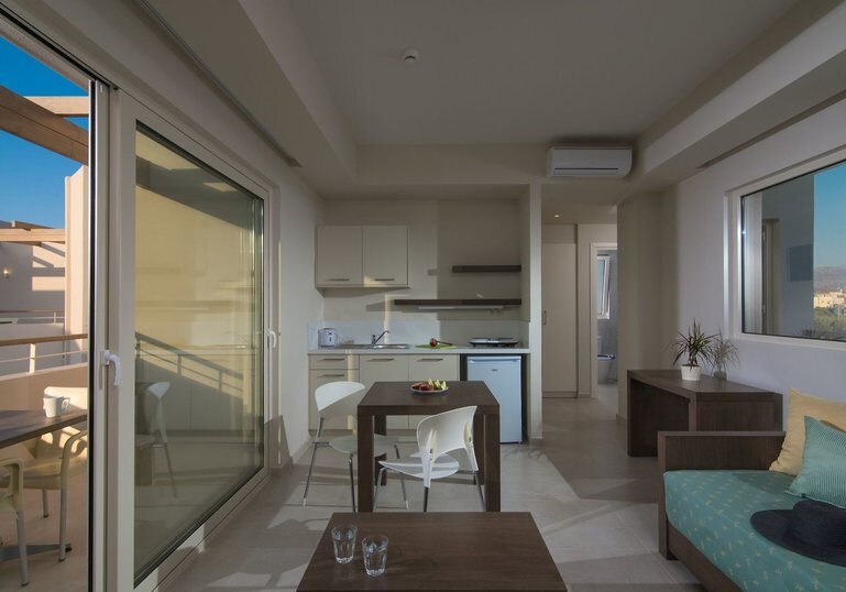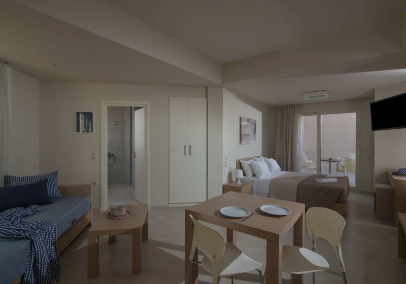 Ourania Apartments fühlt sich an wie ein freundliches Apartmenthaus, das Euch Raum gibt. In Kato Gouves wohnt Ihr in einem Ensemble aus Hauptgebäude und sieben Nebengebäuden mit 57 Wohneinheiten. Der Ton ist unaufgeregt, der Rhythmus entspannt. Ihr richtet Euch in Eurem Apartment ein und seid schnell im Tag.