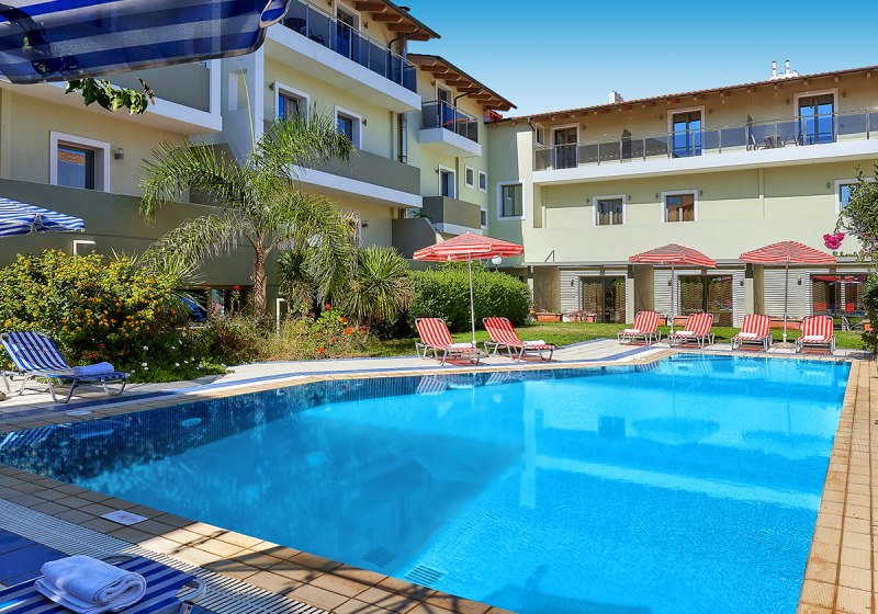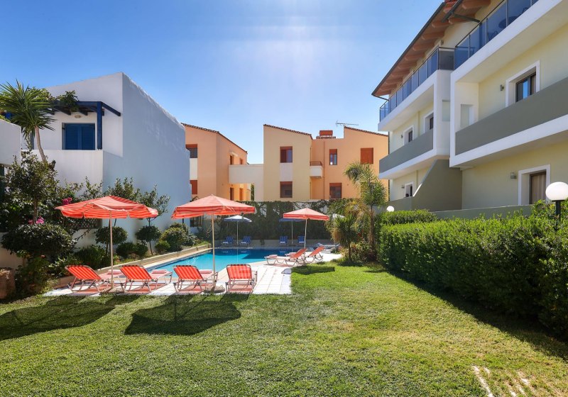Im Panormo Beach wohnt Ihr in einem überschaubaren Haus mit 43 Zimmern, das 2011 zuletzt renoviert wurde. Das Ambiente wirkt klar strukturiert: kurze Wege, eine kompakte Anlage und Gemeinschaftsbereiche, in denen Ihr Euch schnell orientiert. Mit der Nähe zum Strand richtet sich das Hotel besonders an Strandurlauber, die Wert auf unkomplizierte Tage am Meer legen.