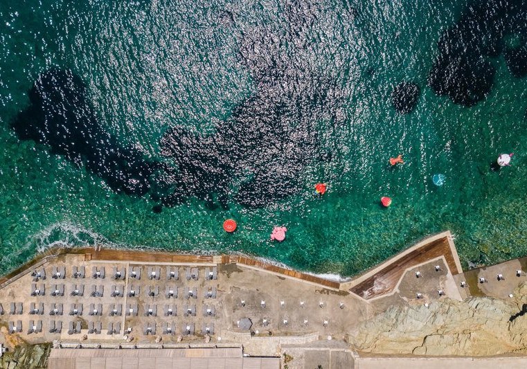 - Zwei Pools: Süß- und Salzwasserpools mit Liegen, Schirmen und Sonnenterrassen.