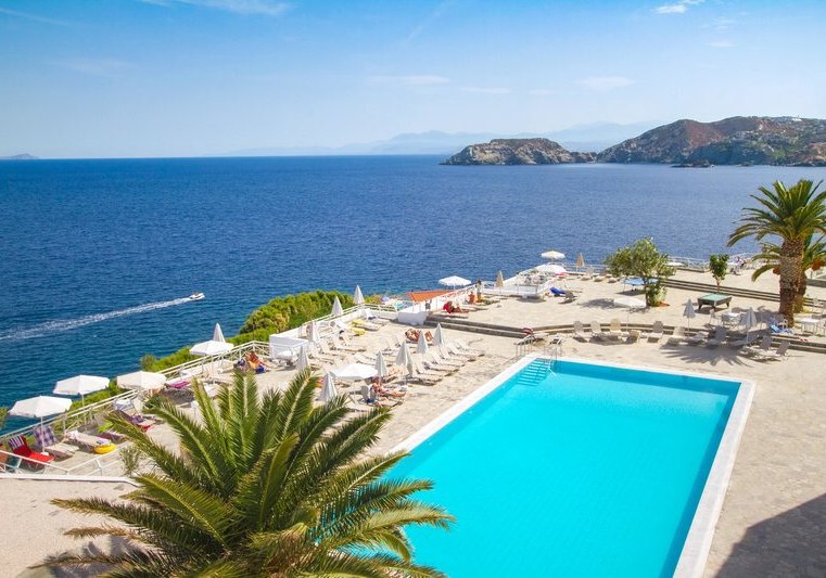 Im Peninsula Resort & Spa wohnt Ihr direkt am Sand- und Kiesstrand von Agia Pelagia. Die Anlage verteilt sich über mehrere Gebäude mit Gartenbereichen, Sonnenterrassen und zwei Außenpools, einer davon mit Süßwasser, der andere mit Salzwasser. Ihr bewegt Euch zwischen Strandbar, Lobbybar, Poolbar und Snackbar und wählt je nach Tageszeit das passende Tempo.