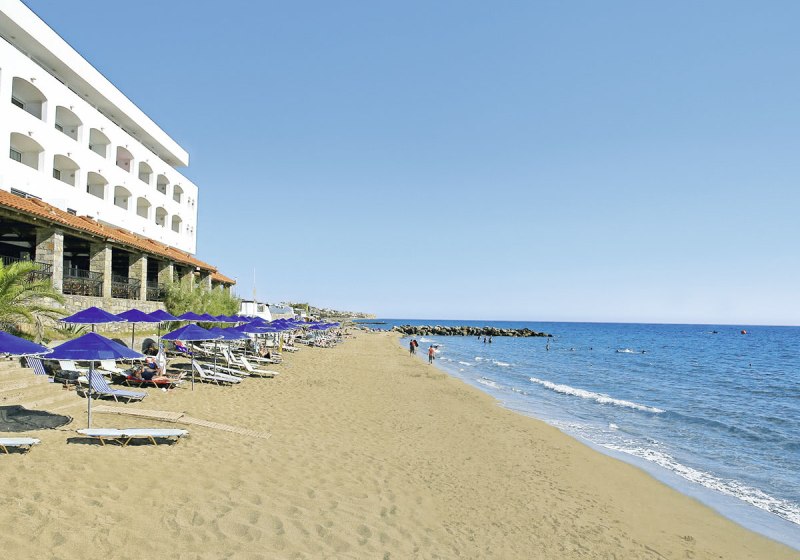 Ihr logiert in Ierapetra direkt am Sand- und Kiesstrand, mit kurzen Wegen zu Sonne und Meer. Das Zentrum der Stadt erreicht Ihr in etwa zehn Gehminuten, ideal für einen Bummel entlang Cafés und Geschäften. Der Flughafen Heraklion liegt rund 100 Kilometer entfernt, die Anreise verläuft damit planbar und übersichtlich.