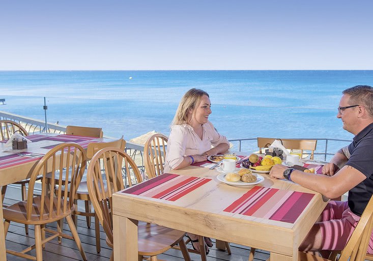 Im Hauptrestaurant mit Außenterrasse esst Ihr mit Blick ins Freie, dazu kommen die À-la-carte-Restaurants „Almyra“ und „Elia“. Wer zwischendurch etwas möchte, nutzt die Snackbar. Das kulinarische Angebot wird in den Bewertungen als hervorragend eingeschätzt, was den Eindruck einer sorgfältigen Küche mit guter Organisation bestätigt.