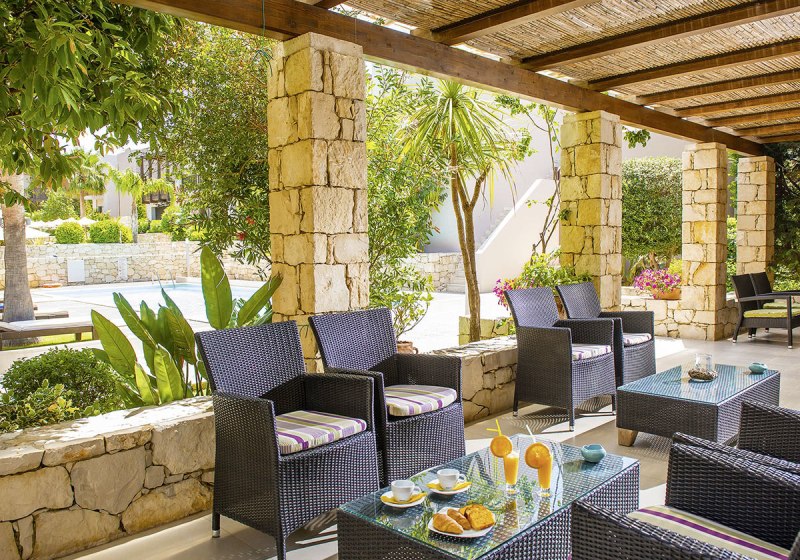 Die Anlage ist klar strukturiert: Empfangsbereich mit Rezeption, WLAN an der Rezeption, Garten und Terrassenflächen. Drei Süßwasserpools und ein Kinderpool bilden das Zentrum des Außenbereichs. Liegen, Schirme und Badetücher sind am Pool inklusive und auch am Strand inbegriffen.