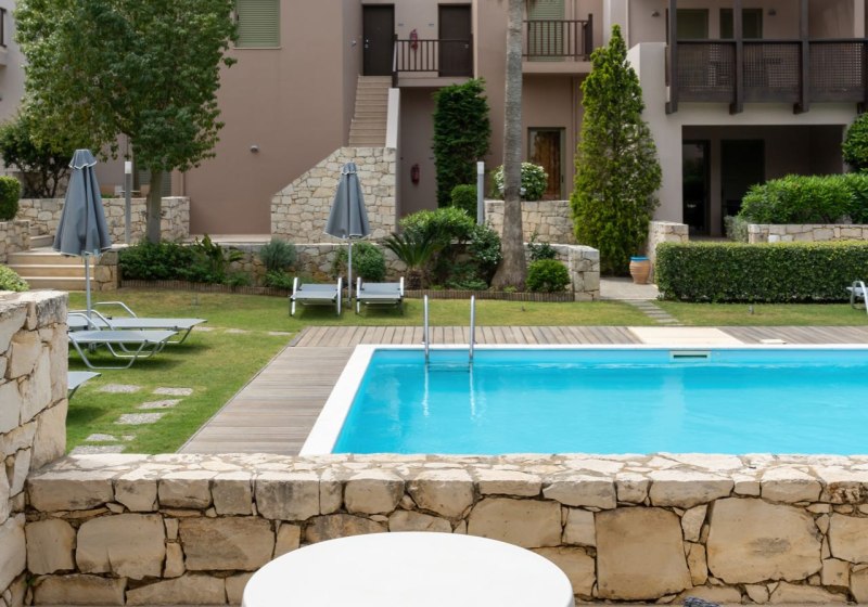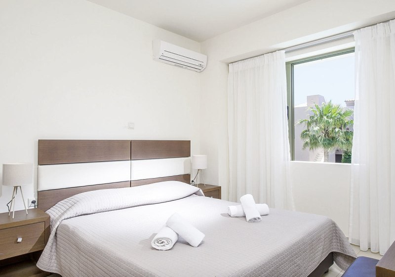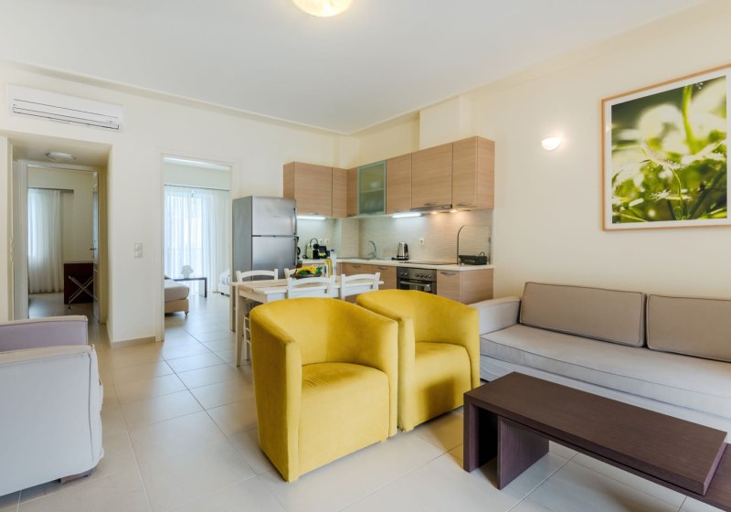 Die Studios kombinieren Wohn- und Schlafraum mit Küche, Essecke und Kühlschrank – ideal für einfache Mahlzeiten. Klimaanlage, Sat-TV, Safe sowie Balkon oder Terrasse gehören dazu. Die Appartements bieten ein oder zwei separate Schlafzimmer für mehr Rückzug und klare Raumaufteilung.