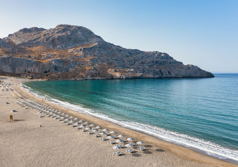 Ihr wohnt in Plakias, durch eine Uferstraße vom Sandstrand getrennt. Der Ort liegt etwa fünf Gehminuten entfernt, was kurze Wege zu Tavernen und Infrastruktur ermöglicht. Dank zentraler und zugleich ruhiger Lage genießt Ihr beides: Nähe und Gelassenheit. Rethymno erreicht Ihr nach rund 35 Kilometern.
