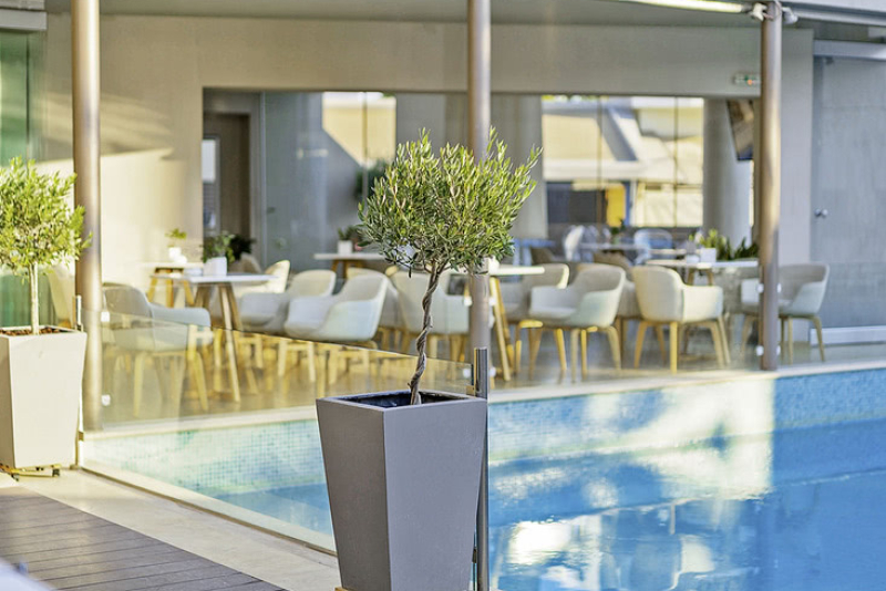Das Hauptrestaurant 'Orexis' im Nefeli Hotel bietet griechische und internationale Küche. Gäste können aus einer Vielzahl von Speisen wählen, darunter auch glutenfreie, laktosefreie, vegane und vegetarische Optionen. Getränke, alkoholische und alkoholfreie, sind ebenso im Angebot.Ausstattung