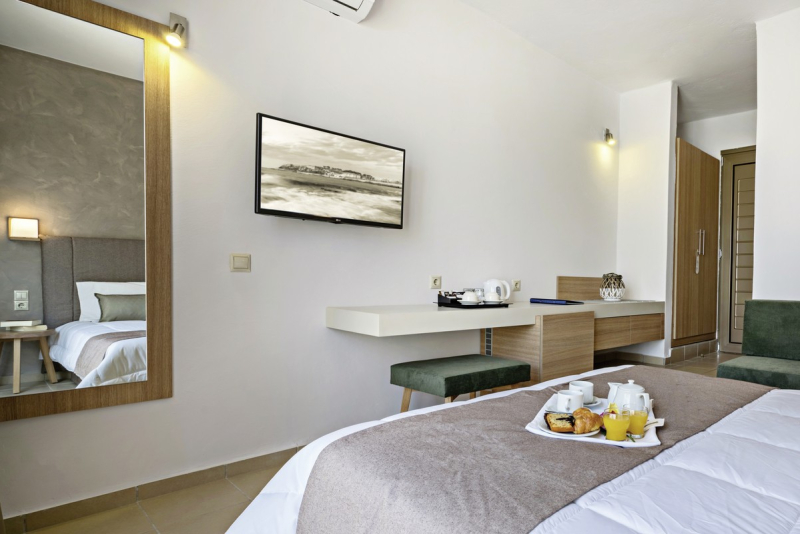Die Zimmer im Nefeli Hotel sind ansprechend und freundlich gestaltet. Alle Zimmer sind mit Klimaanlage, Sat-TV, WLAN, Minikühlschrank und Kaffee-/Teezubereiter ausgestattet. Es gibt verschiedene Zimmeroptionen, darunter Doppelzimmer, Superior Doppelzimmer und Familienzimmer mit einem Schlafzimmer.