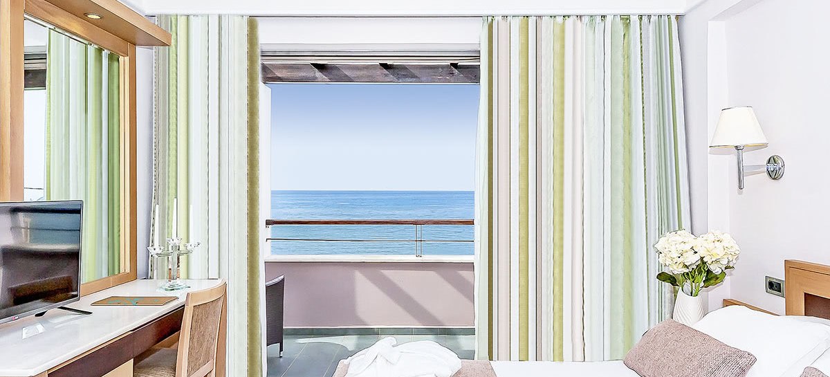 Zu den Ausblicken zählen Garten-, Pool- oder Meerblick, je nach Kategorie. Bettentypen reichen von Twin- bis Kingsize-Varianten, auf Wunsch mit Zustell- oder Kinderbett. Nichtraucherzimmer sind ausgewiesen. Durchdachte Details wie Heizung, Minibar und solide Materialität sorgen für verlässlichen Komfort ohne Schnörkel. Highlight: Auswahl an Blickrichtungen bis hin zum Meer.