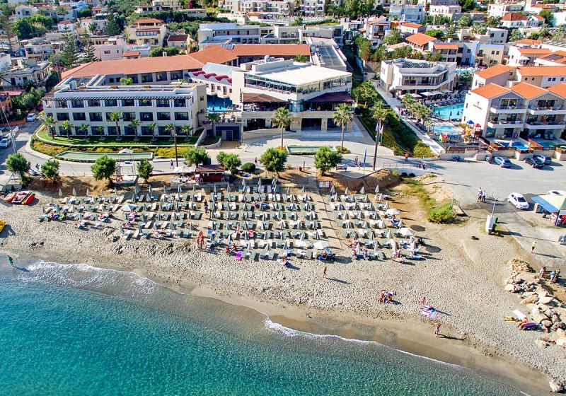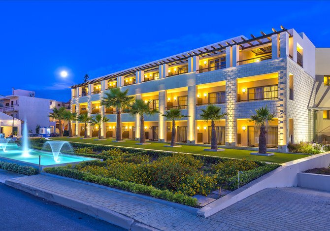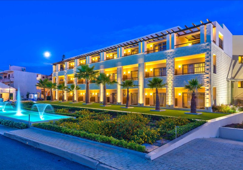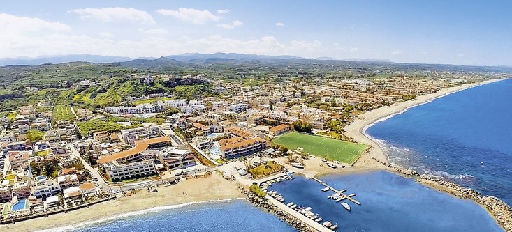 Im Porto Platanias Beach Resort & Spa wohnt Ihr direkt am Sandstrand von Platanias und spürt vom ersten Moment das klare Tempo eines Strandresorts: kurze Wege, weite Blicke aufs Meer, lebendige Gemeinschaftsbereiche. Die Anlage ist weitläufig konzipiert, mit Haupt- und Nebengebäuden, mehreren Lounges und Rückzugsflächen. Familien, Strandreisende und Paare finden hier einen strukturierten Rahmen mit Animation, Kinderprogramm und ruhigen Ecken. Highlight: Direkte Strandlage mit kurzer Distanz nach Chania.