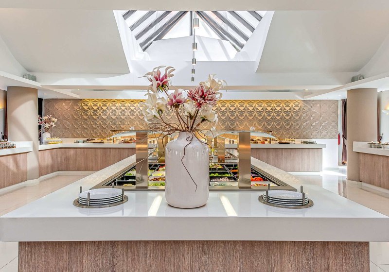 Fünf Restaurants und sechs Bars geben Euch kulinarische Freiheit vom Frühstück bis zum späten Drink. Ihr wählt zwischen Buffet, Live-Kochen und à-la-carte-orientierten Stationen, je nach Programm. All Inclusive, Halb- oder Vollpension sowie einzelne Mahlzeiten sind möglich – Getränke, inklusive alkoholischer, können je nach Paket eingeschlossen sein. Highlight: Fünf Restaurants mit Live-Kochen für mehr Auswahl.