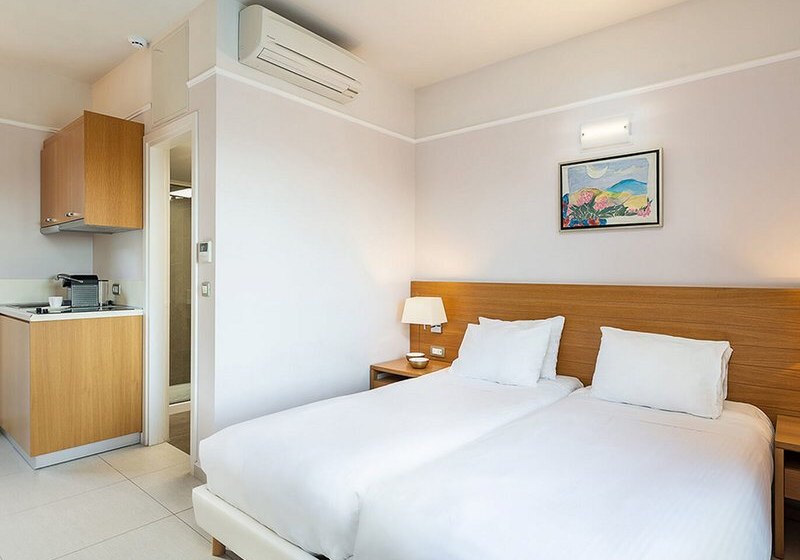 Studios mit etwa 20 Quadratmetern verbinden Wohn- und Schlafbereich funktional. Appartements bieten mit separatem Schlafzimmer rund 32 Quadratmeter und damit mehr Privatsphäre. Alle Wohneinheiten verfügen über Klimaanlage, Kühlschrank, TV, Telefon, WLAN, Mietsafe sowie Dusche/WC und Föhn.