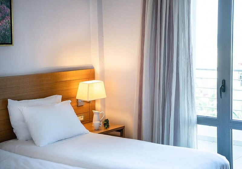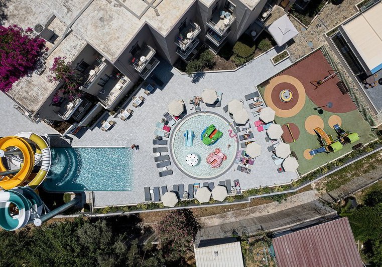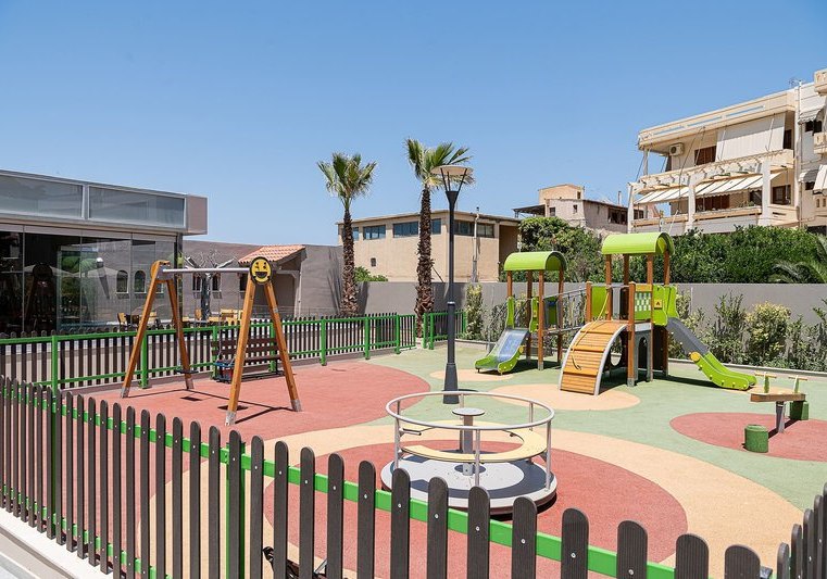Die Anlage ist kompakt organisiert: Außenpool, separater Kinderpool, Liegen und Schirme am Pool sowie eine sonnige Terrasse strukturieren den Außenbereich. Rezeption, Lobbylounge, Internetecke und durchgängiges WLAN sorgen innen für schnelle Orientierung und verlässliche Verbindung.