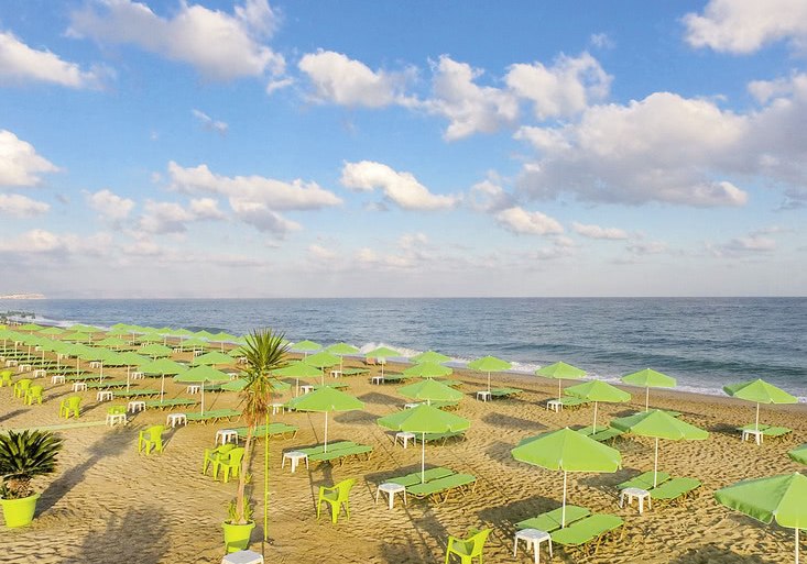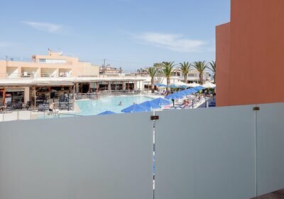 Ihr wohnt in Zimmern mit Balkon oder Terrasse, individuell regulierbarer Klimaanlage/Heizung und 43" Smart‑TV mit Musikkanälen. Für Familien stehen passende Zimmer bereit, optional auch mit seitlichem Meerblick. Haustiere bis 5 kg sind auf Anfrage erlaubt. Das Haus verfügt über 137 Zimmer, Baujahr 1994, renoviert 2021. Kulinarisch erwarten Euch ein Hauptrestaurant mit Terrasse, eine Bar und eine Pool‑/Snackbar; Verpflegungsoptionen reichen von Frühstück bis All‑Inclusive. Highlight: Kurze Wege, klar strukturierte Anlage und 100 Meter bis zum Sand‑/Kiesstrand.