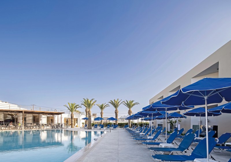 Zimmer mit Balkon oder Terrasse, 43" Smart‑TV und Klimatisierung runden das Bild ab, Familien wählen passende Optionen oder seitlichen Meerblick. Die Bewertungen bestätigen Service‑Stärke und Strandlage. Für alle, die einfache Wege, badenahes Tempo und Rethymnon in Reichweite schätzen, ist dies eine stimmige Wahl für die Ferien.