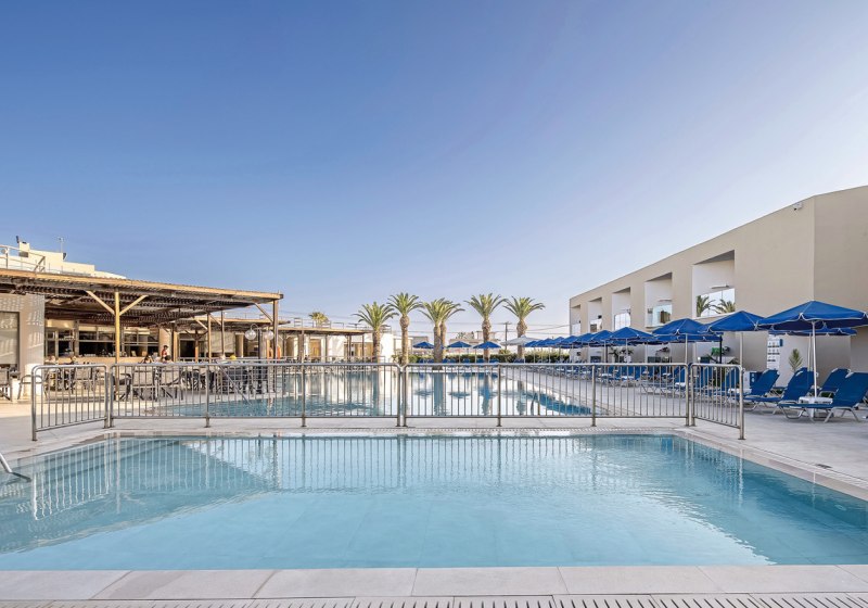 Im Rethymno Village steht die Erholung klar im Zeichen von Wasser, Licht und frischer Luft. Der Süßwasserpool mit separatem Kinderbecken und die Sonnenterrasse mit Liegen und Schirmen bieten die ruhigen Momente zwischen Badegang und Strandspaziergang. So entsteht ein unaufgeregter Rhythmus aus Abkühlen, Lesen und kurzen Wegen zur Erfrischung an der Bar.