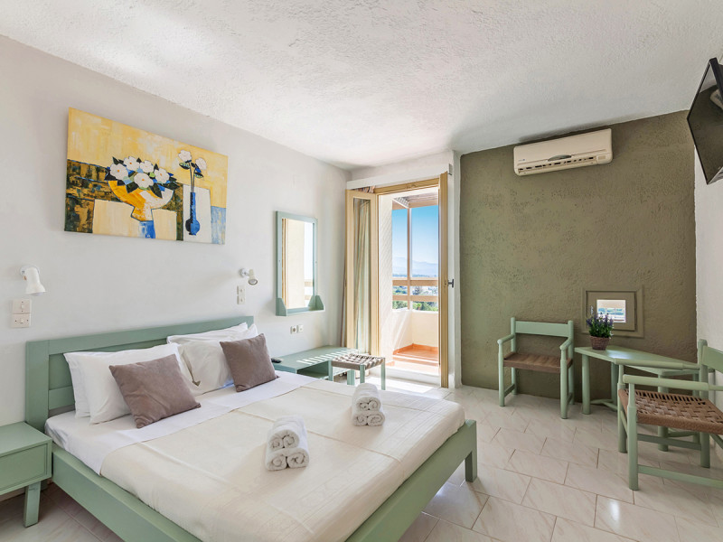 Eure Zimmer sind funktional ausgestattet: Klimaanlage, TV, Telefon und WLAN gehören dazu. Bad oder Dusche mit WC sowie Föhn sind vorhanden. Ein Balkon oder eine Terrasse erweitert den Raum nach draußen, einige Zimmer eröffnen Meerblick. Die Wohnfläche liegt bei etwa 18 Quadratmetern. Highlight: Klare Ausstattung mit Außenbereich.