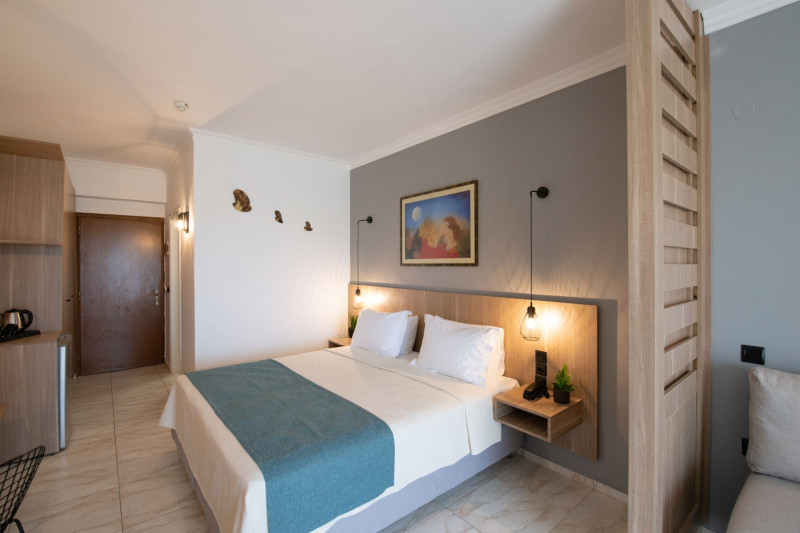 Die Selini Suites liegen in Kolymbari auf Kreta – mit einer angenehm direkten Anbindung an Meer und Freizeit: Der Sand‑/Kiesstrand ist etwa 300 Meter entfernt, der Wasserpark mit Rutschen rund 150 Meter. Bis zum Stadtzentrum sind es etwa 1.500 Meter, was Spaziergänge, eine kurze Velo‑ oder Autofahrt erlaubt. Der Flughafen Chania ist mit ungefähr 35 Kilometern gut erreichbar und gibt Eurer An‑ und Abreise einen klaren Rahmen. Die Umgebung wechselt zwischen maritimer Brise und dörflicher Gelassenheit, ideale Voraussetzungen für ruhige Tage am Pool und kleine Ausflüge. Dank Parkplätzen am Hotel und der kompakten Struktur bleibt Ihr flexibel, ob Ihr ans Meer, zum Wasserpark oder in den Ort startet – ohne lange Wege, ohne Eile, mit Zeit für das Wesentliche in den Ferien.