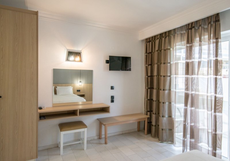 Die Zimmer sind funktional und klar ausgestattet: Dusche/WC, Föhn, individuell regulierbare Klimaanlage/Heizung, Safe inklusive, WLAN, Flatscreen‑Sat‑TV, Telefon und Minikühlschrank. Ihr genießt Balkon oder Terrasse, teils mit Garten‑, Pool‑ oder Meerblick. Für mehr Platz stehen Familienzimmer mit separatem Schlafzimmer und Wohn‑/Schlafraum bereit.