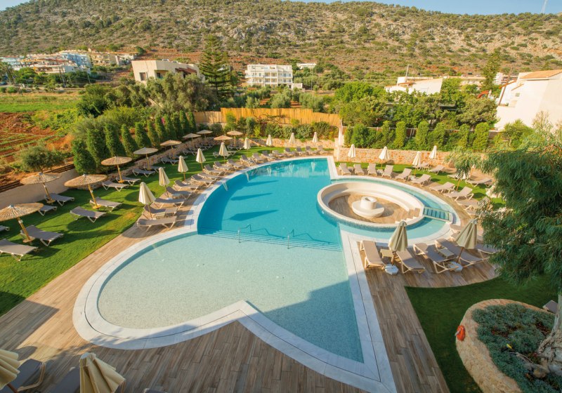 Cactus Royal Spa & Resort richtet sich als Adults-only-Refugium ab 16 Jahren an Euch, die Ruhe, klare Strukturen und kurze Wege schätzen. In Stalis wohnt Ihr in zweiter Reihe zum Sandstrand und gleitet zwischen drei Außenpools, Gartenflächen und lichtdurchfluteten Lounges entspannt durch den Tag.