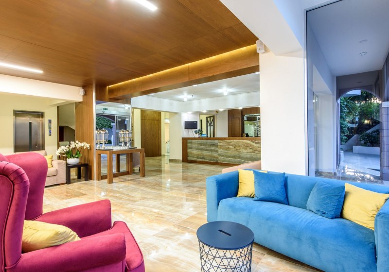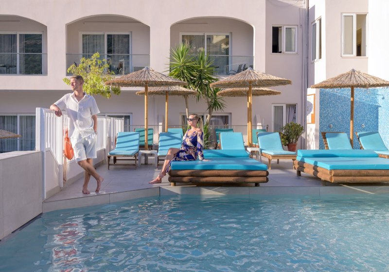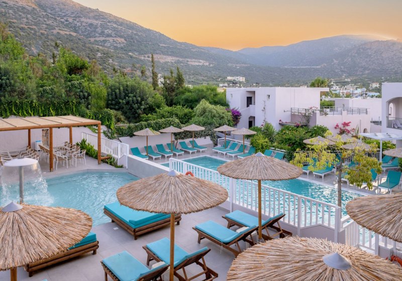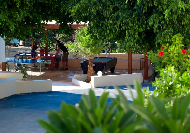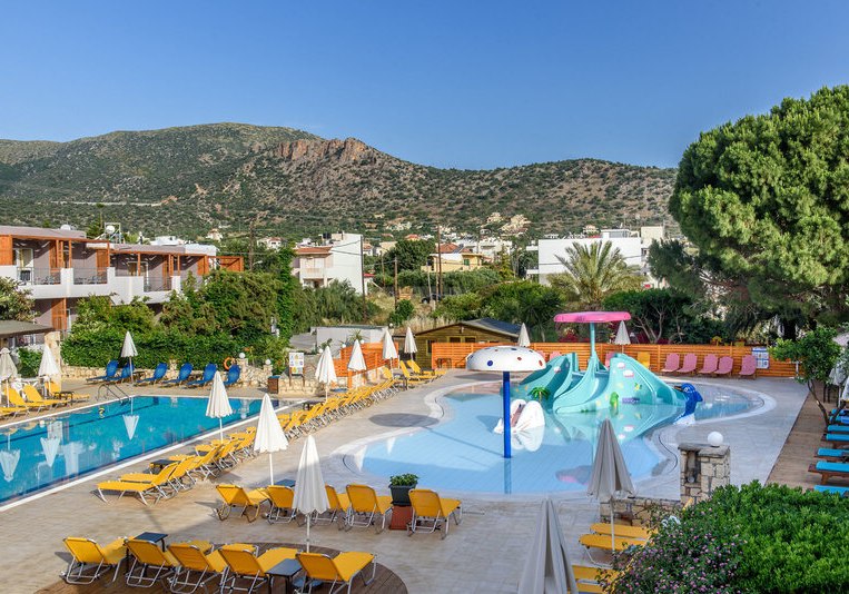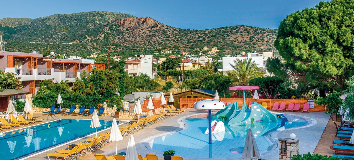 Die Wege zum Zentrum von Stalis sind kurz, sodass Ihr Restaurants und Bars schnell erreicht. Drinnen wie draußen bleibt die Stimmung wohltuend entspannt: Sonnenterrassen mit Liegen und Schirmen, ein Whirlpool im Außenbereich und angenehm gestaltete Aufenthaltsräume geben Eurem Tag Rhythmus. WLAN in den öffentlichen Bereichen hält Euch verbunden, während Familien mit Miniclub, Kinderdisco und Spielplatz verlässliche Anlaufpunkte finden. Wer zwischendurch Ruhe sucht, nimmt den Erwachsenenbereich in Anspruch; wer Abwechslung mag, orientiert sich am Unterhaltungsprogramm. So fühlt sich ein Aufenthalt an, der Struktur bietet, ohne Euch zu festzulegen.