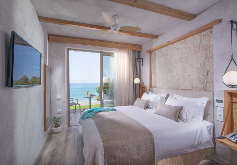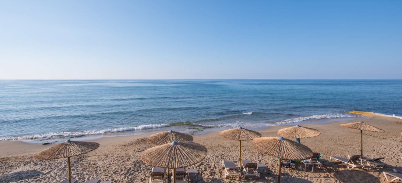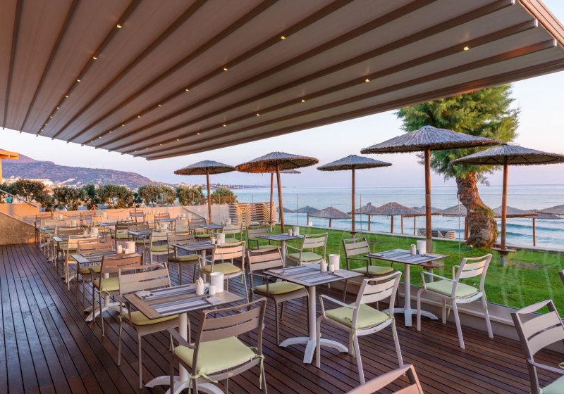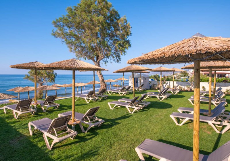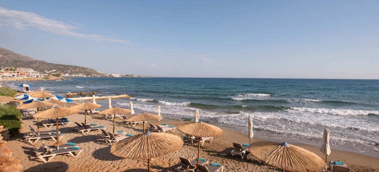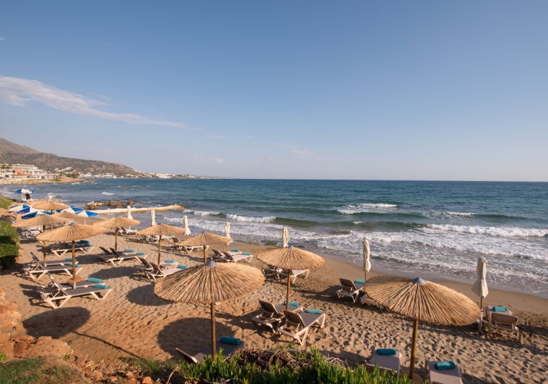 - Direkte Strandlage: Hauptgebäude liegt unmittelbar am Sandstrand von Stalis auf Kreta.