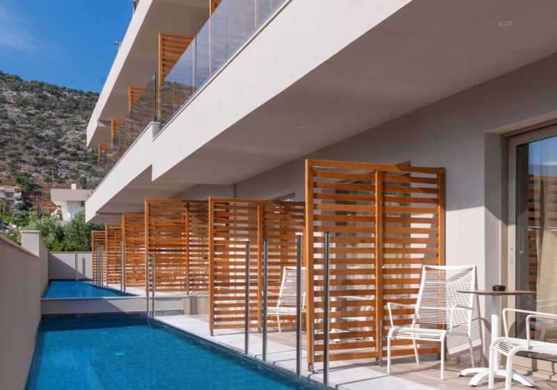 - Wasserzugang: Zimmer teils mit Whirlpool sowie privatem oder Sharing-Pool.